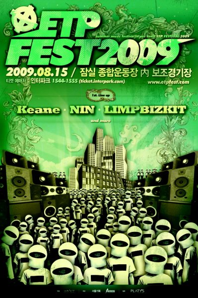 6일 'ETPFEST 2009'에 따르면 이번 'ETPFEST 2009'에서는 서태지, 림프비즈킷,NIN, KEANE 등 'ETP 4대 천왕'간 헤드라이너 자리를 놓고 다툼이 치열해지고 있다.