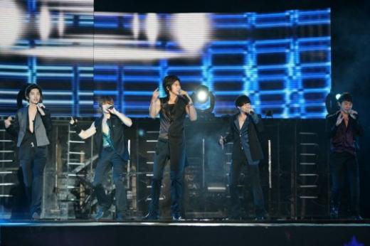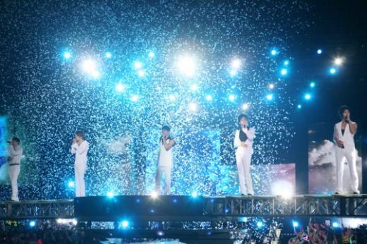 5인조 인기 아이돌그룹 동방신기가 중국 상하이 4만 팬을 매료시켰다.