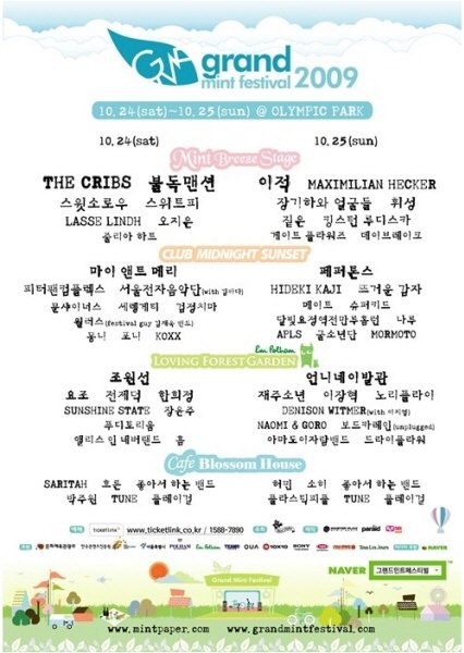 스윗소로우, 장기하와 얼굴들, 휘성 등 62팀이 오는 24일 열리는 '그랜드 민트 페스티벌 2009'(이하 GMF2009)에 참가한다.