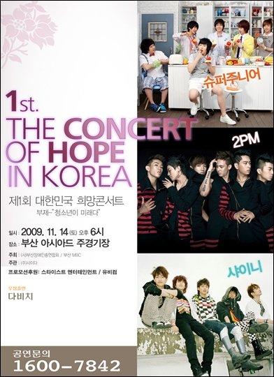 28일 부산장애인협회에 따르면 슈퍼주니어 해피, 2PM, 샤이니가 오는 11월 14일 부산 아시아드 주경기장에서 열리는 제 1회 대한민국 희망콘서트에 참여한다.