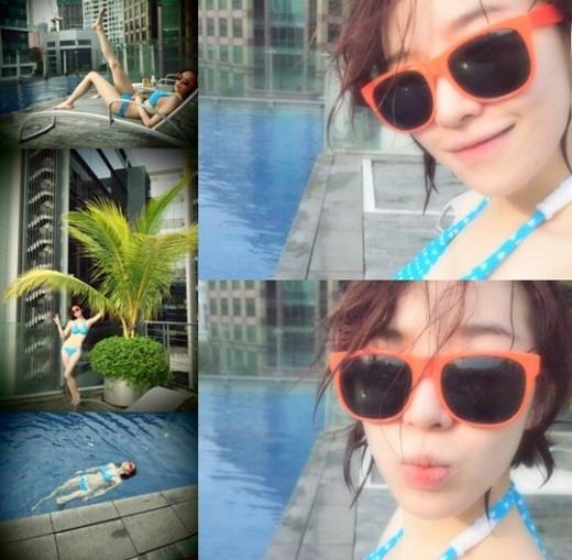 여성그룹 브라운아이드걸스의 가인이 비키니 차림으로 몸매를 과시했다.