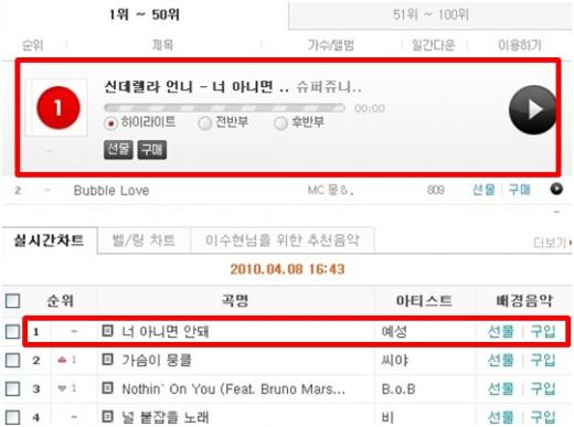 '너 아니면 안 돼'는 8일 네이트닷컴의 컬러링 차트 1위를 차지했다. 이 곡은 주간차트에서도 MC몽, 서인영의 '버블 러브'에 이어 2위에 올랐다.