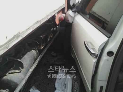 여성 듀오 태사비애의 비애와 지애가 고속도로에서 교통사고를 당한 가운데, 사고 현장 모습이 공개됐다.(관련기사 12일 머니투데이 스타뉴스 최초 보도)