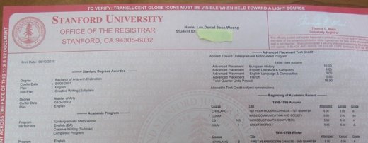 인터넷으로 발급받은 성적증명서와 스탠퍼드대학교의 공식 실(seal, 직인)이 다르다며일부 네티즌들로 부터 성적표가 위조됐다는 의혹을 받아왔다.