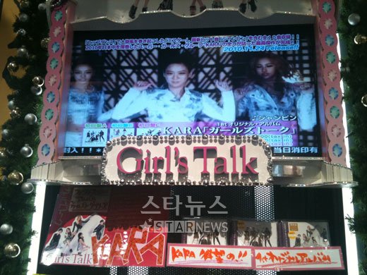유독 카라의 진열대가 눈에 띄었다. 대형 포스터와 함께 레코드샵 내에 카라의 신곡 ‘점핑’이 울려퍼졌다. 최근 일본진출을 알린 2PM과 비스트의 사진도 음반과 함께 사진이 도배돼 있었다.