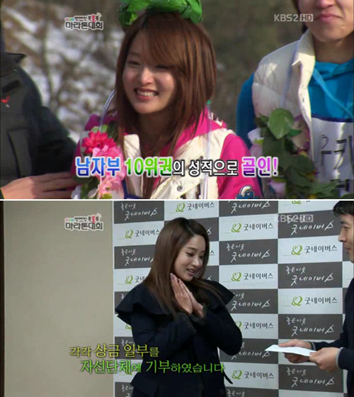 소리는 지난 4일 방송된 KBS 2TV '연예인 복불복 마라톤대회'에 출연해 유키스 수현과 함께 남녀 우승을 차지했다.