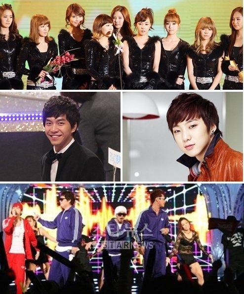 위부터 소녀시대 이승기 강승윤 DJ DOC