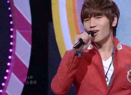 가수 케이윌이 '가슴이 뛴다'로 첫 지상파 음악 프로그램 1위를 차지, 기쁨의 눈물을 보였다.