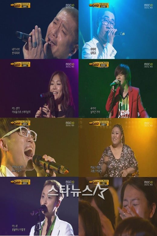 28일 오후 3시 현재 멜론 실시간 차트. 우선 '나가수' 음원이 방송 1주일이 다 돼 가는데도 여전히 강세를 보이고 있다. 22일 방송분(사진)에서 미친 고음과 열창을 선보였던 김연우의 '나와 같다면'이 3위, 진성으로 조관우 원곡을 재해석한 김범수의 '늪'이 7위, 폭풍감동을 선사한 임재범의 '여러분'이 11위를 달리고 있다.