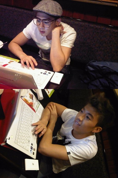 사진에는 닉쿤과 우영이 노트북 앞에 앉아 모니터를 바라보고 있는 모습이 담겼다.