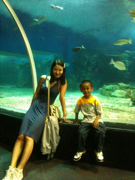 사진 속 황보는 아쿠아리움을 배경으로 후원하는 아이와 함께 앉아 미소 짓고 있다.