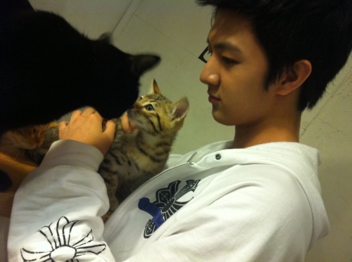 게재된 사진에서 천둥은 자신의 고양이 '다둥'에게 뽀뽀를 시도하는 고양이에게 경계의 눈빛을 보내 웃음을 자아냈다.