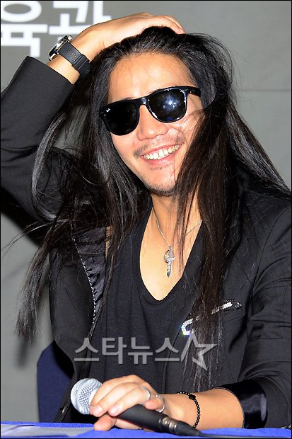 가수 박완규가 5일 오후 서울 서초구 팔래스호텔에서 열린 '케이록 에볼루션(K-Rock Evolution)' 기자간담회에 참석해 머리를 쓸어넘기고 있다.