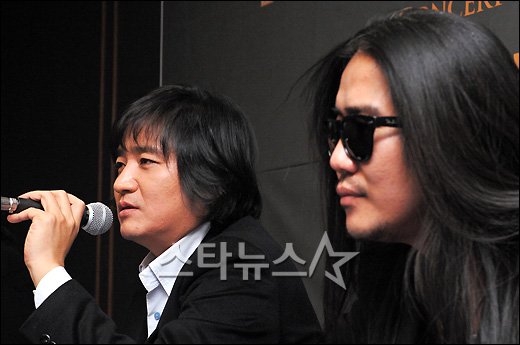 가수 신대철과 박완규가 5일 오후 서울 서초구 팔래스호텔에서 열린 '케이록 에볼루션(K-Rock Evolution)' 기자간담회에 참석해 질문에 답변하고 있다.