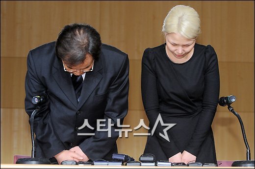 이 자리에서 알리는 "사회적인 물의를 빚은데 대해 다시금 정중히 머리 숙여 사죄드립니다"라며 "나영이(가명)와 부모님께 사죄 드립니다"라며 고개를 숙였다.