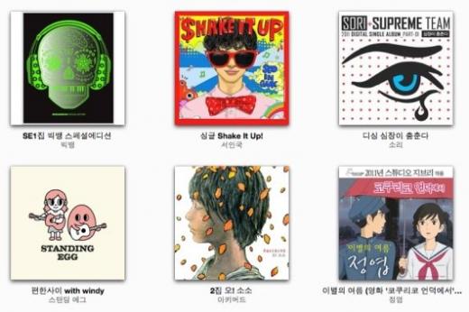 정엽의 '이별의 여름'은 일본 스튜디오 지브리의 애니메이션 '코쿠리코 언덕에서'의 한국어 주제가로 발표된 노래인 만큼, 정겨운 스튜디오 지브리 스타일의 두 남녀 학생이 등장한 스틸을 재킷으로 삼았다. 서인국의 싱글 'Shake It Up', 스탠딩에그의 '편한 사이', 신사동호랭이의 'Super Hero', YB의 미니앨범 '흰수염고래', 야키버드의 정규2집 '오! 소스', 커피소년의 싱글 '웃는다'도 올해 눈에 띄었던 만화 스타일의 재킷.