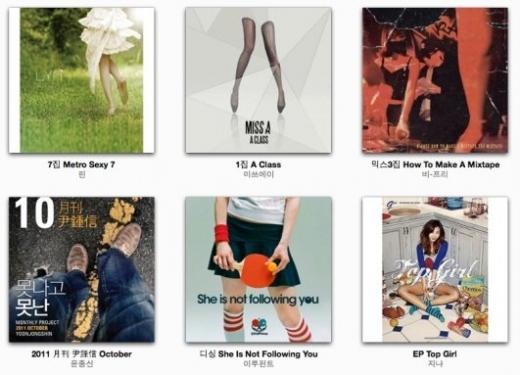 지나의 미니앨범 'Top Girl'은 8등신 미녀 지나의 앉아있는 다리가 확 눈길을 끄는 재킷. 이루펀트의 디싱 'She Is Not Following You'는 탁구채와 탁구공을 든 여성의 다리에 방점을 찍었다. 이밖에 윤종신의 디싱 '2011 월간 윤종신 October', 허밍어반스테레오의 싱글 '그날', 비-프리의 믹스3집 'How To Make A Mixtape', 린의 정규 7집 'Metro Sexy 7' 모두 남자거나 여자거나 사람의 다리와 발에 주목했다.