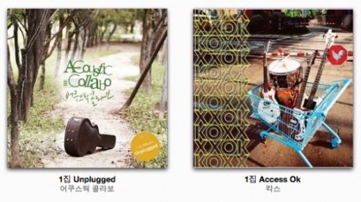 풍경화 혹은 정물화라! 요즘 음반 재킷에서는 거의 사라진 방편이지만 그래서 아스라한 추억에 젖게 한 음반도 당연히 눈길을 끌었다. 일본에서 더욱 대접받는 5인조 일렉트로닉 개러지 밴드 칵스의 정규 1집 'Access Ok'는 마트 손수레에 드럼과 전기기타 등을 채워넣은 정경이 이색적이다. 인디 듀오 어쿠스틱 콜라보의 정규 1집 'Unplugged'는 한적한 산책길, 덩그라니 놓여있는 기타 케이스를 포착했다.