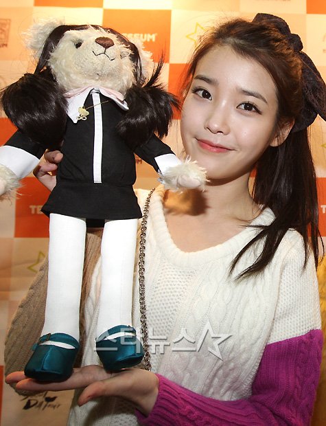 가수 아이유가 28일 오후 서울 삼성동 코엑스 전시장에서 열린 국내최대인형축제 '2011 서울인형전시회'(www.dollfair.co.kr)를 찾아 자신의 테디베어 인형과 함께 포즈를 취하고 있다.