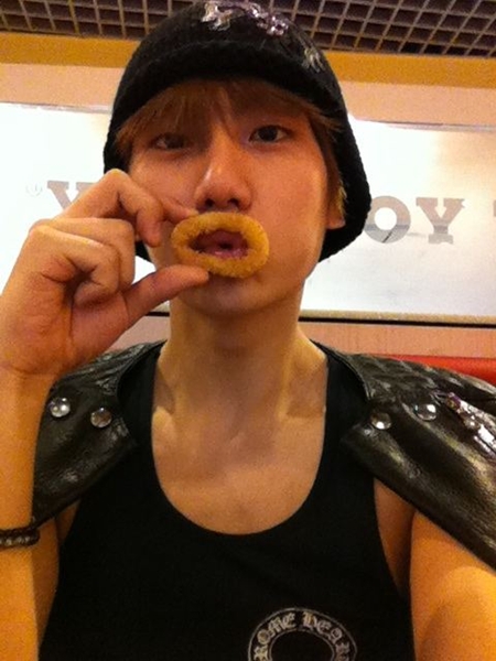 사진 속 장현승은 패스트푸드점에서 파는 동그란 튀김을 입에 대고 연신 장난을 치고 있다. 장현승은 카리스마를 발산하는 블랙 민소매 티셔츠와 가죽 재킷 의상과는 상반되는 귀여운 매력을 뽐내 눈길을 끌었다.