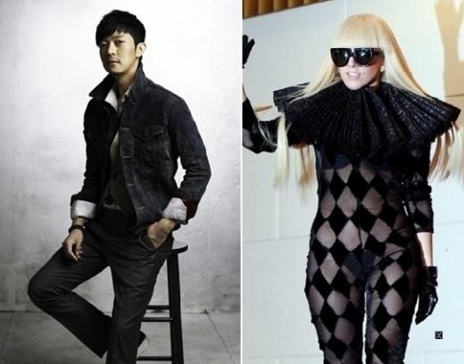 가수 윤건(왼쪽)-지난 2009년 내한 당시 기자회견에 참석한 레이디가가ⓒ머니투데이 스타뉴스