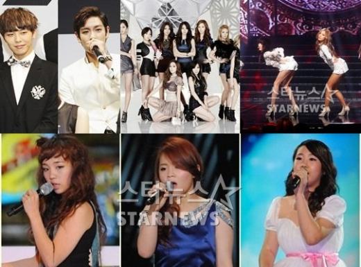GD&탑 소녀시대 미쓰에이 박지민 이하이 백아연(왼쪽 위부터 시계방향)