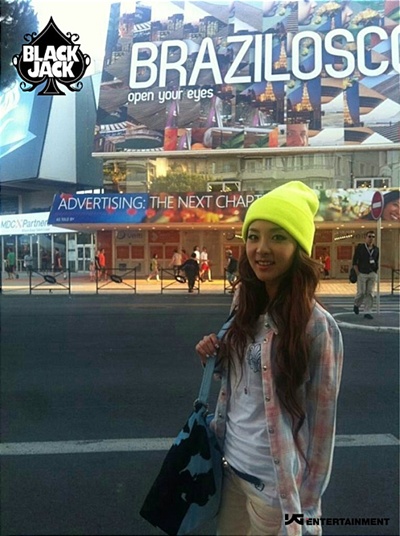 걸 그룹 2NE1의 멤버 산다라박이 프랑스 칸 광고제에 참석하기 전 찍은 인증사진을 공개했다.