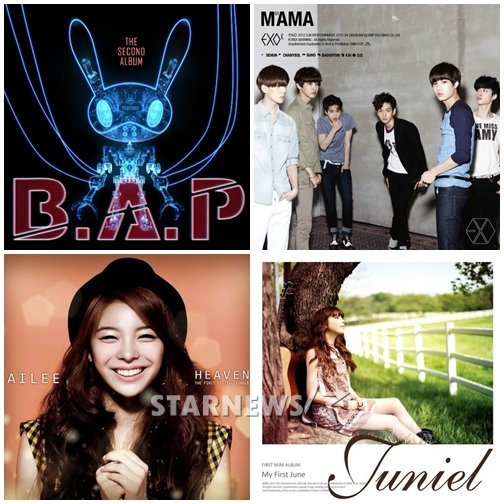=2011년 12월~2012년 6월 출시 기준. 가온차트 월별 음반차트 기준(1~5월 100위까지). 가온차트 주간별 음반차트 기준(6월 50위까지)