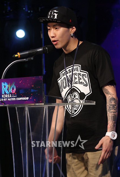 가수 박재범이 6일 오후 서울 논현동 플래툰 군스트할레에서 열린 'R-16 KOREA 2012 세계 비보이 마스터즈 대회' 기자간담회에서 축사를 하고 있다.