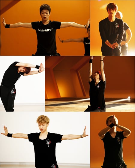 앨범 준비하는 틈틈이 꾸준하게 바디아트를 해온 멤버들은 호흡에 집중한 채 차분하게 온 몸의 근육들을 이완시키는 모습, 힘껏 내뻗은 팔 근육을 통해 강렬한 남성미가 풍겼다.