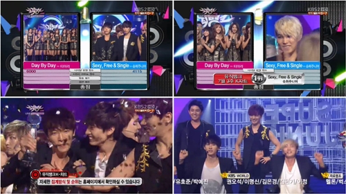 이날 1위를 차지한 슈퍼주니어는 노래 'Sexy, Free & Single'로 티아라와 함께 1위 후보에 올랐다.