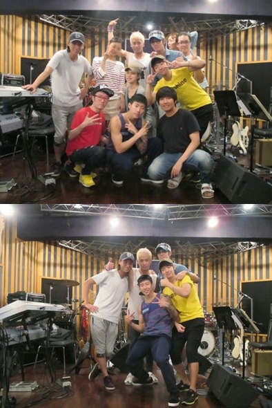 게재된 두 장의 사진 속 중심엔 박재범과 유빈(25), 황인회(25), 최민수(24), 김명규(23) 네 멤버가 악기들이 놓인 연습실을 배경으로 사진을 위한 포즈를 취하고 있다.