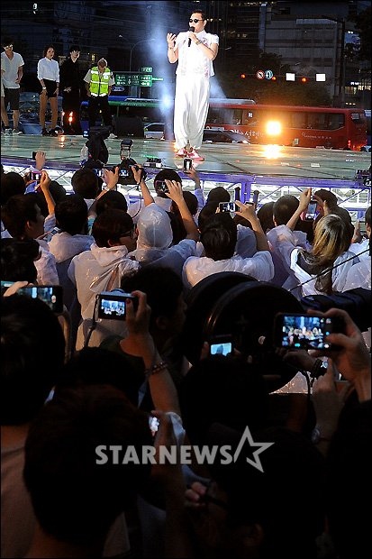 퇴근 후 우연히 들른 한 회사원은 스타뉴스에 "뮤직비디오에서만 보다가 이렇게 실제로 무대를 접하니 싸이의 인기를 실감할 수 있었다"며 엄지손가락을 치켜세웠다.