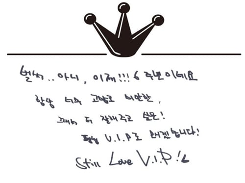 지드래곤은 "벌써..아니, 이제 6주년이네요. 항상 너무 고맙고 미안한, 그래서 더 잘해주고 싶은! 평생 V.I.P'로 모시겠습니다!"라고 글을 올렸다.
