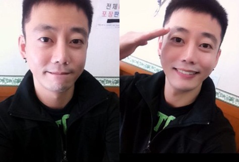 테이는 "쨔잔. 마지막인사. 어색하네. 고등학교이후 처음이라. 후딱 다녀올게요. 충성! 끝으로 영호사마의 염장 코스프레. '핸섬피플' 답잖아"라는 글과 함께 두 장의 사진을 게재했다.