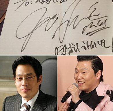 정용진 신세계그룹 부회장은 최근 자신의 페이스북을 통해 "어렵게 받은 싸이의 싸인"라는 글과 함께 싸이에게 받은 사인을 공개했다. 특히 이 사인에는 '열심히 하세요'란 문구도 담겨 있는 보는 이들을 웃게 했다.