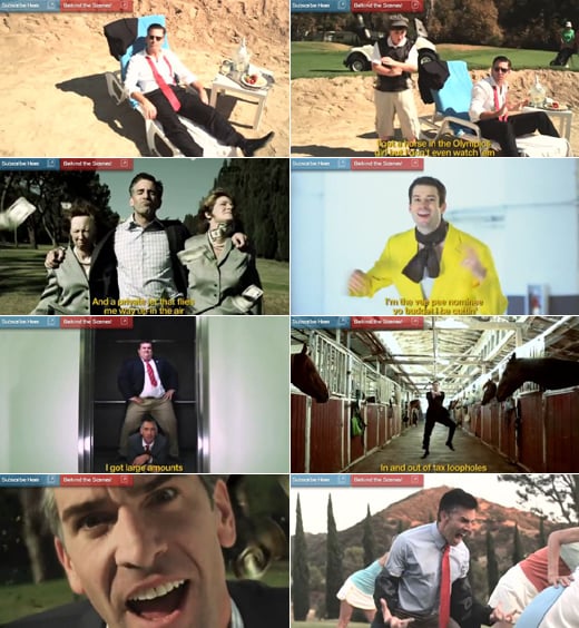 특히 대선 관련 '강남스타일' 패러디 중 가장 큰 인기를 얻은 영상은 '롬니 스타일'로, 6일(한국시간) 오전 현재 1203만 조회수를 기록 중이다. 영상 속 롬니 후보를 빼닮은 배우는 승마장과 골프장 등을 활보하며 "부와 호사, 이그게 바로 밋 스타일"이라고 노래한다. 롬니가 부유한 사업가 출신임을 빗대 표현한 것이다.