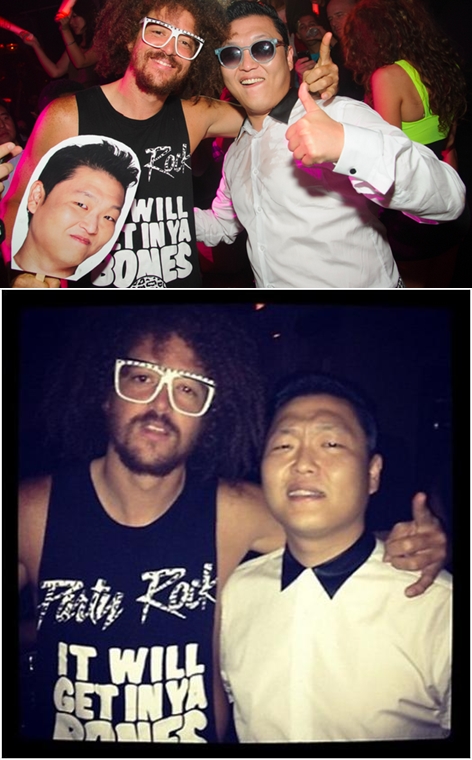 전 세계적으로 셔플댄스 붐을 일으킨 듀오 LMFAO(레드푸, 스카이 블루)의 레드푸는 8일 오전 LMFAO 공식 트위터에 "레드푸와 싸이"라는 글과 함께 사진을 게재했다.