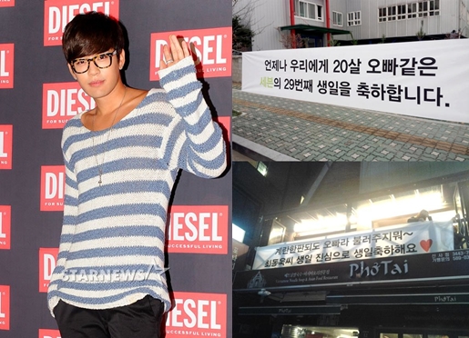 특히 현수막에는 세븐의 노래 '내가 노래를 못해도'를 패러디해 앞으로 세븐의 나이가 서른을 넘어도 영원히 오빠라 부르겠다는 의미의 '계란한판되도 오빠라 불러주지뭐~'라는 센스 넘치는 글이 적혀있어 웃음을 자아냈다.