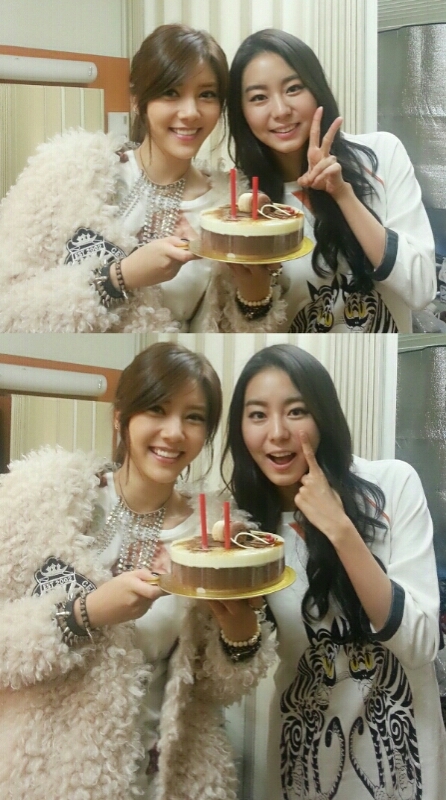 공개된 사진 속 유이와 손담비는 케이크를 들고 다정히 카메라를 응시하고 있다. 이는 KBS 2TV 음악프로 '뮤직뱅크'의 MC인 유이가 컴백 무대를 앞두고 있는 손담비를 응원하기 위해 대기실에 들른 모습으로, 둘 다 누구랄 것 없이 빛나는 미모를 자랑해 보는 이들의 부러움을 자아냈다.