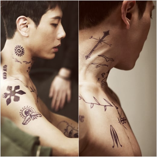 사진 속 박효신은 상의를 탈의한 채 온몸에 다양한 모양의 바디페인팅 작품을 선보이며 옴므파탈의 모습을 보여주고 있다.
