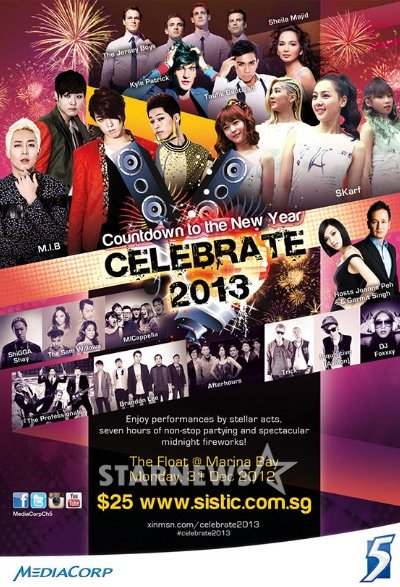 '카운트다운쇼 셀러브레이트 2013'은 매년 화려한 볼거리와 세계적인 뮤지션이 포진된 라인업을 자랑하는 싱가포르의 공연으로 M.I.B는 2부의 메인 무대를 장식한다.