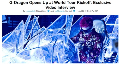 6일 소속사 YG엔터테인먼트에 따르면 빌보드는 지드래곤과 영상 인터뷰를 통해 이례적으로 케이팝 아티스트를 집중 조명 했다.