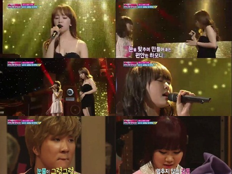 14일 오후 방송된 SBS '일요일이 좋다-K팝 스타 드림 스테이지'(이하 K팝 스타)에서는 시즌1과 시즌2 경연자들이 출연해 한 팀씩 짝을 이뤄 대결을 벌였다.