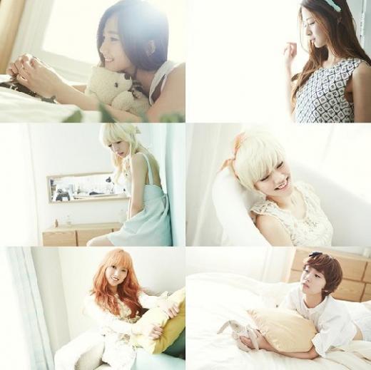 이날 공개된 사진에서 멤버들은 봄의 여신을 주제로 봄 햇살이 스며드는 침실에서 순백의 의상을 입고 있다.