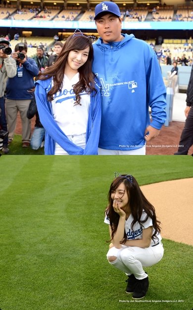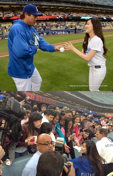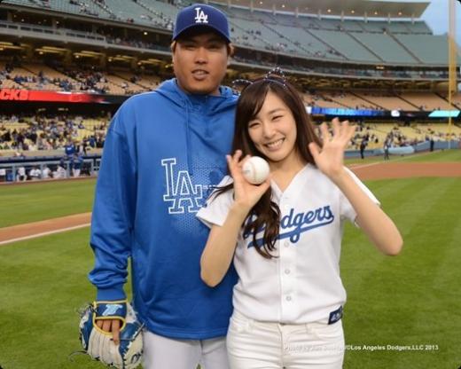 티파니는 6일 오후 7시(현지시간) 미국 로스앤젤레스 다저 스타디움에서 열린 LA 다저스와 아리조나 다이아몬드백스의 경기에 앞서 대한민국 류현진 선수와 호흡을 맞춰 시구를 했다.