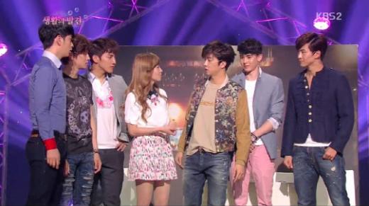 남자 6인 아이돌그룹 2PM(준케이 택연 닉쿤 우영 준수 찬성)이 '개그콘서트'에 등장, 깨알 웃음을 선사했다.