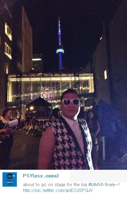 싸이는 17일 자신의 트위터에 "MMVA 피날레 무대에 오르기 전"이라는 글과 함께 한 장의 사진을 게재했다.