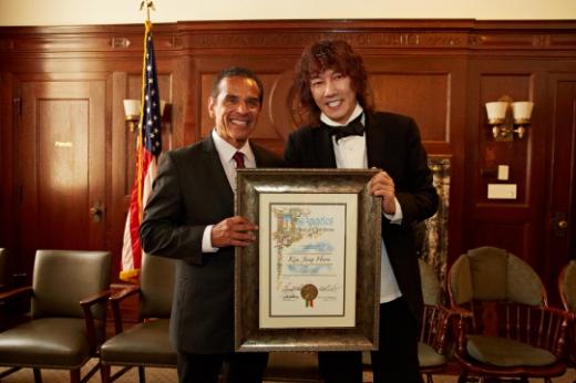 가수 김장훈이 미국 LA 시장으로부터 감사패를 받았다.