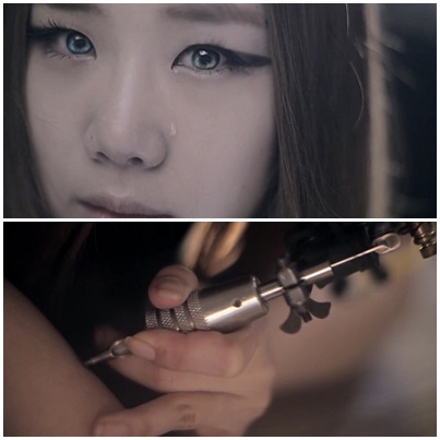 사진 속 유성은은 기존에 보여줬던 귀여운 모습과 달리 컬러렌즈를 착용하고 직접 문신을 하는 등 다소 몽환적인 모습이다.